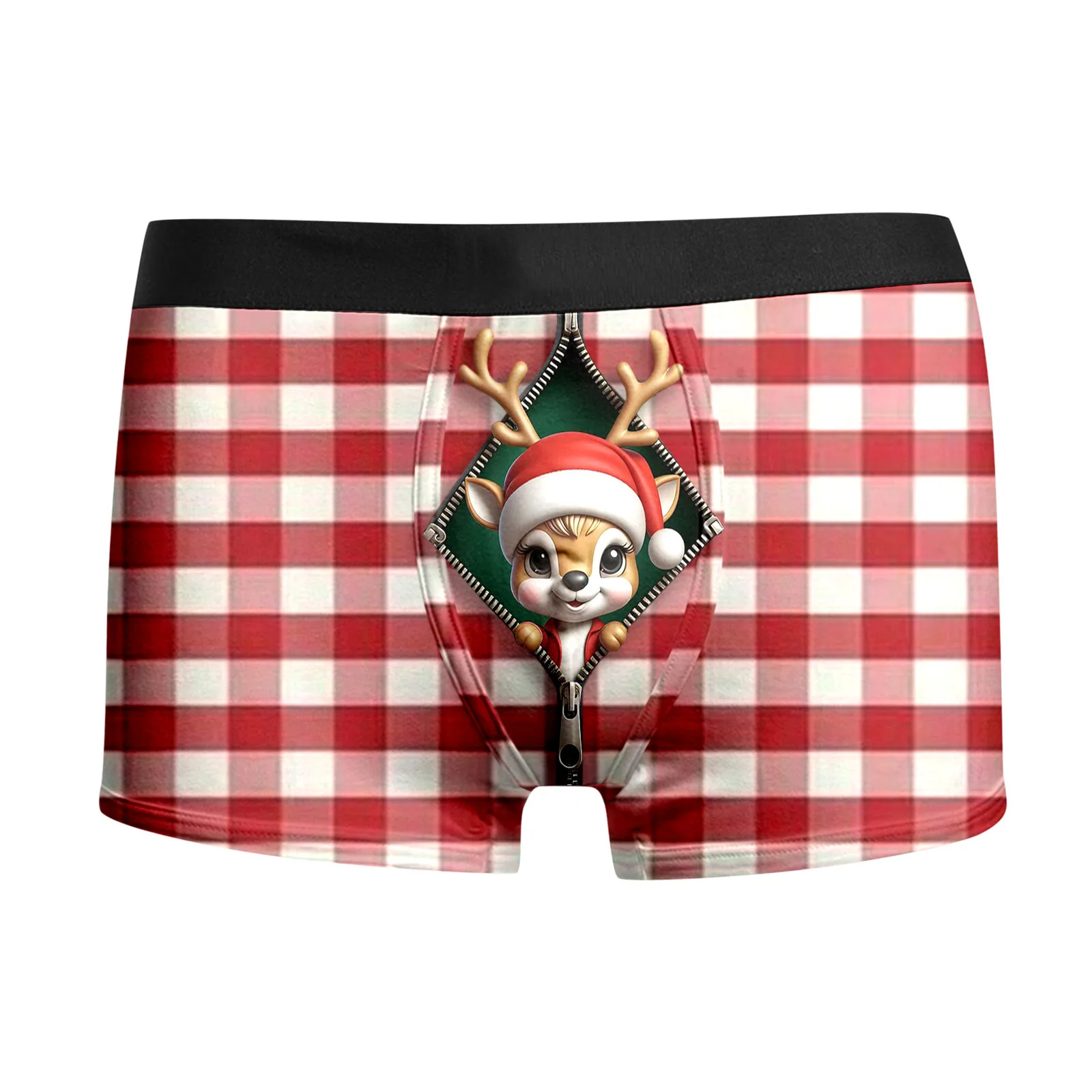 These men’s boxers feature a festive 3D elk print designed for fun and seasonal style.