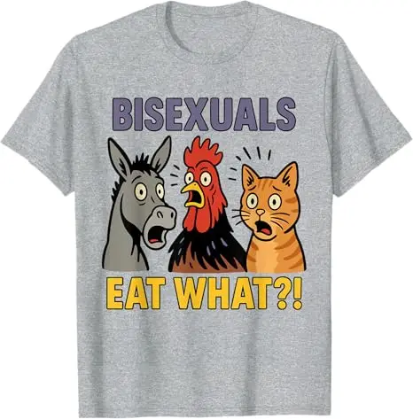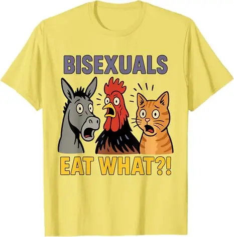 This T-shirt features a groovy and humorous bisexual pride theme with a playful pun-based design.