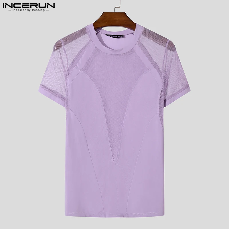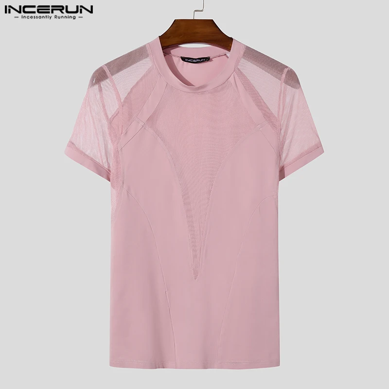 This men’s T-shirt features a stylish mesh splicing design for a bold and modern look.