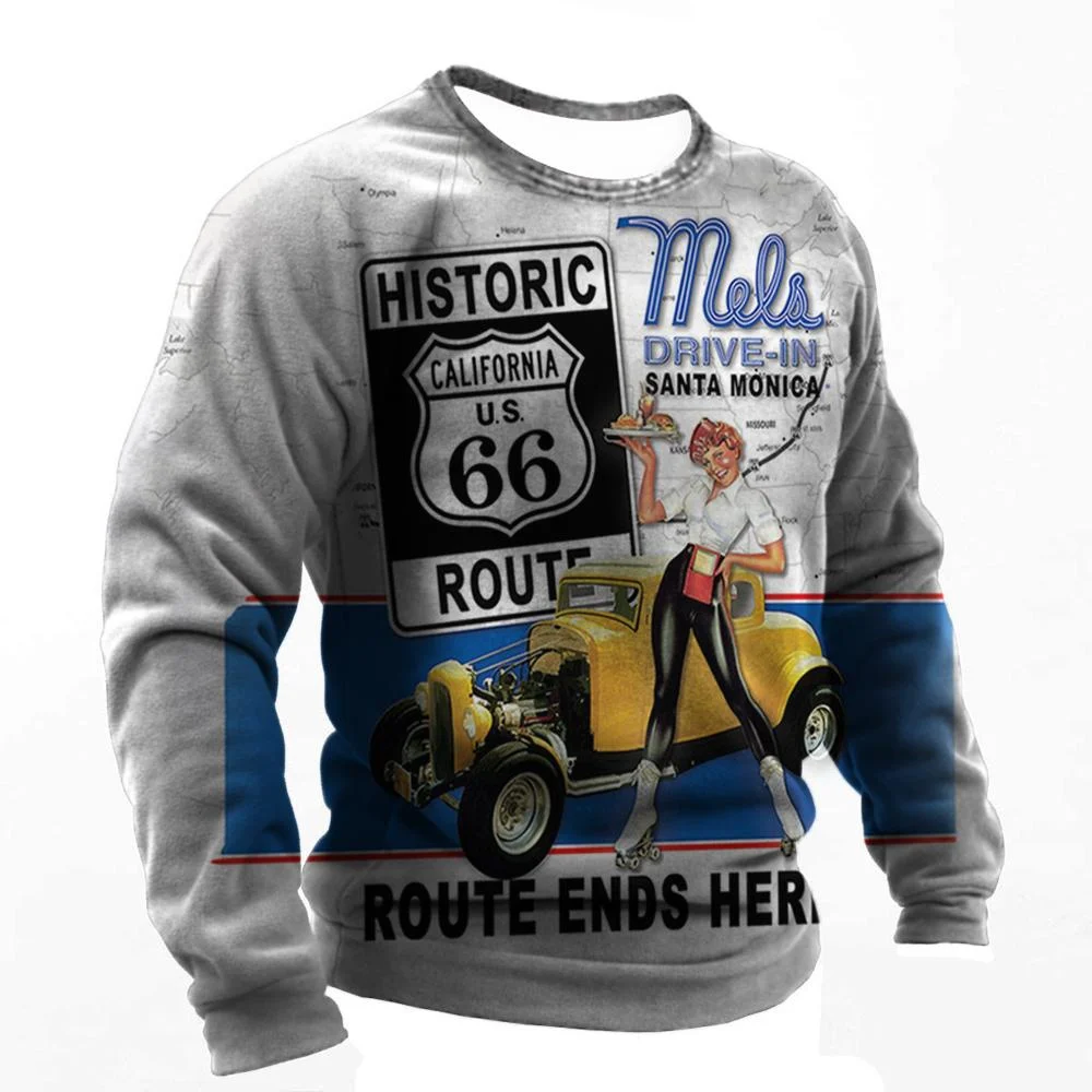 This vintage-style T-shirt features a bold Route 66 graphic for a classic Americana look.